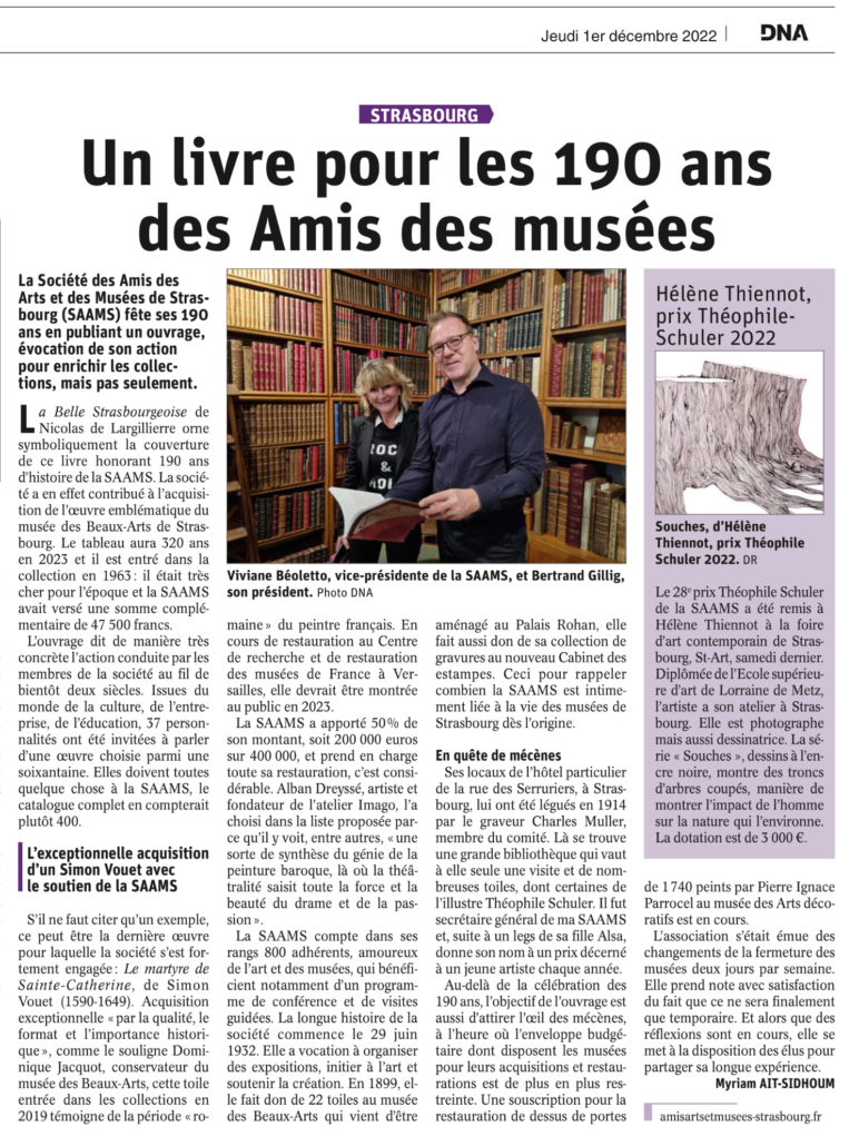 Actualités, La SAAMS dans les médias Un livre pour les 190 ans des Amis des musées 1 décembre 2022/par Georgina GAY CHRISTOPHE
