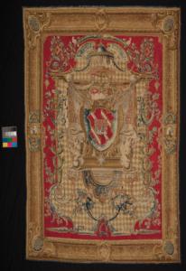 - une portière aux Armes des Rohan tissée probablement par les ateliers de la Malgrange dans le deuxième quart du XVIIème siècle, restaurée en 2019.