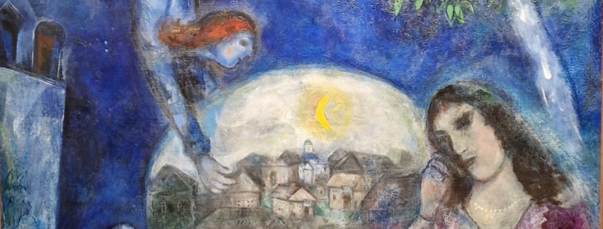 A travers ce parcours, le spectateur découvre des tableaux qui portent les stigmates des épreuves de la vie d’un homme, tant sur le plan historique et collectif que sur le plan individuel. En même temps l’art de Chagall, grâce à l’invention d’un langage pictural nouveau fait de symboles et de métaphores spirituelles revisitées, laisse transparaître un message d’une profonde humanité. L’objet de cette conférence d’une heure est d’aller à la rencontre de l’univers de cet artiste qui, selon les mots d’Aragon, « dit les choses sans rien dire ».