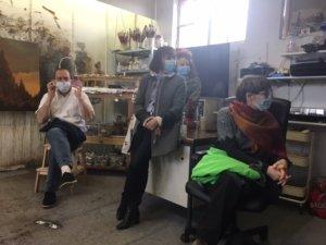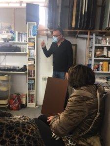 Tout est dit. Une visite d’atelier c’est toucher la matière picturale, sentir les médiums, voir le travail progresser, goûter les couleurs et écouter les sons qui accompagnent la création. Une visite qui s’adresse à tous les sens.