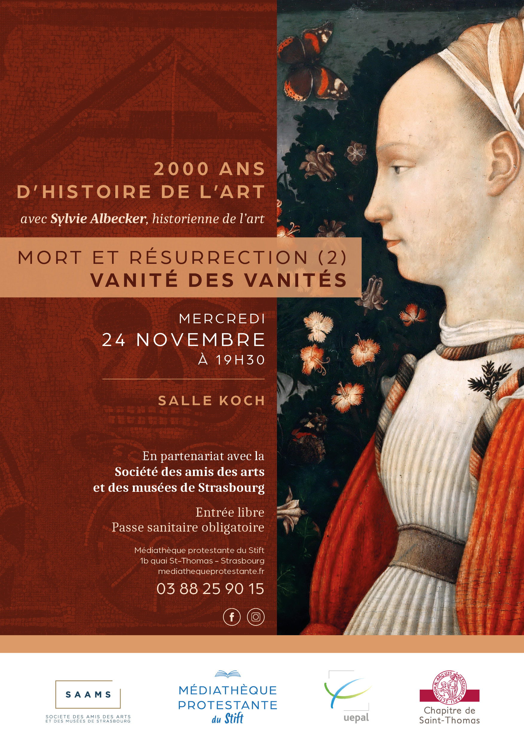 Madame Sylvie Albecker, Docteur en Histoire de l'art et Vice-Présidente de la SAAMS vous convie à une prochaine rencontre sur le thème "Mort et résurrection" en vous proposant la première conférence : Jeudi 23 septembre à 20h à la Médiathèque Protestante salle Koch 1B, quai Saint-Thomas 67000 Strasbourg Conférence ouverte à tout public, entrée […]